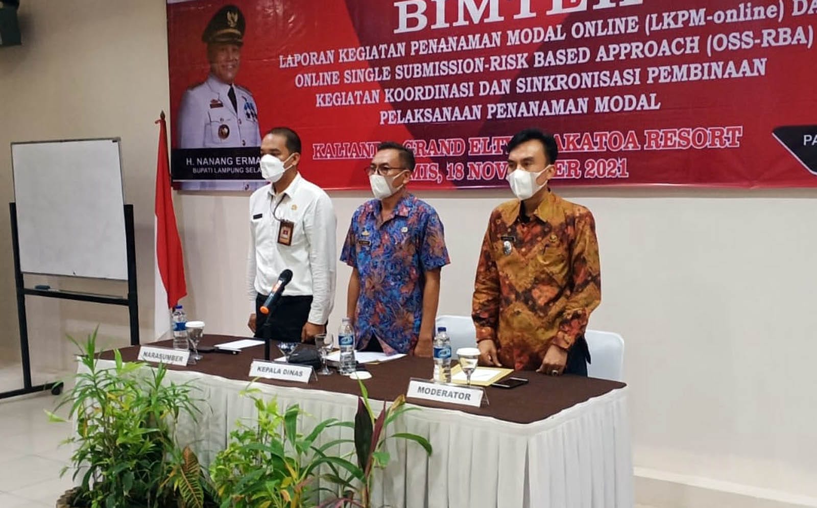 LAMPUNG SELATAN, Wartapublik.net – Dinas Penanaman Modal dan Pelayanan Terpadu Satu Pintu (DPMPTSP) Kabupaten Lampung Selatan menggelar bimbingan teknis (bimtek) Laporan Kegiatan Penanaman Modal Online (LKPM-Online) dan Online Single Submission-Risk Based Aproach (OSS-RBA) kegiatan koordinasi dan sinkronisasi pembinaan pelaksanaan penanaman modal, yang digelar di Grand Elty Krakatoa Resort Kalianda, Kamis (18/11/2021).