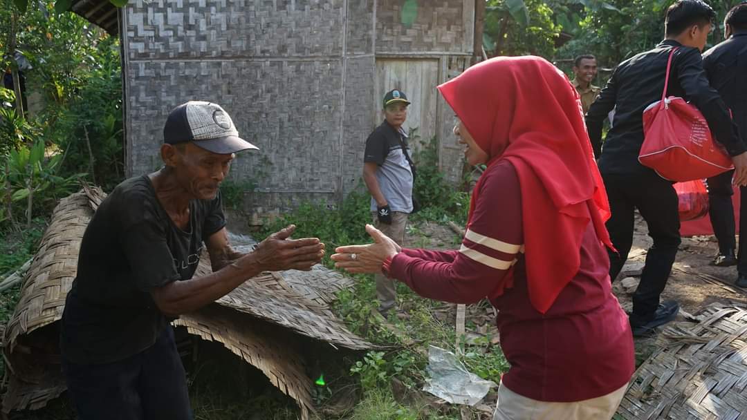 Pada kesempatan itu Winarni menyerahkan sejumlah bantuan untuk keperluan Jawiri dan anaknya serta dirinya juga meminta agar Aparatur Desa dan Kecamatan bergotong royong bersama masyarakat untuk membantu pembangunan rumah agar bisa cepat di tempati kembali.