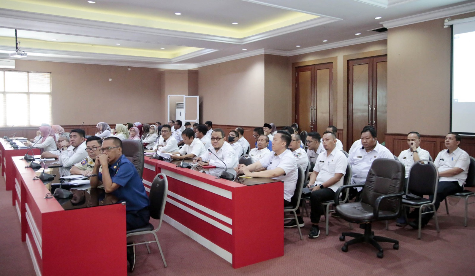 Rapat kerja yang digelar guna membahas dan menyusun rencana kerja tentang bantuan hukum, pertimbangan hukum dan tindakan hukum lainnya, berlangsung di Aula Krakatau, kantor bupati setempat, Kamis (14/3/2024).