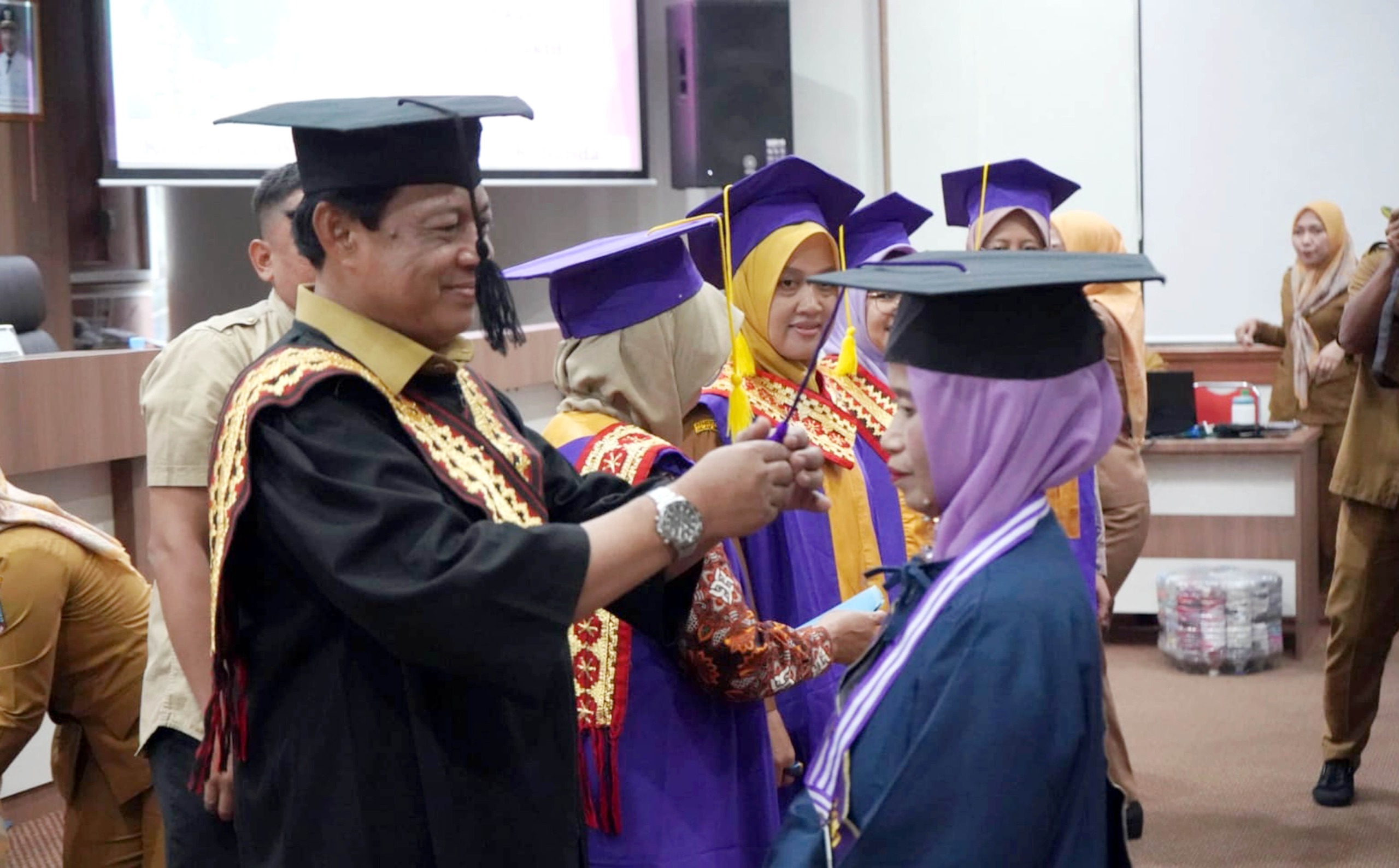 “Hari ini bukan sekadar wisuda biasa, tetapi wisuda yang paling membanggakan. Biasanya wisuda identik dengan mahasiswa muda, namun hari ini yang diwisuda adalah mereka yang paling kaya pengalaman hidup. Ini membuktikan bahwa belajar tidak mengenal usia dan tidak pernah terlambat,” ujar Supriyanto.