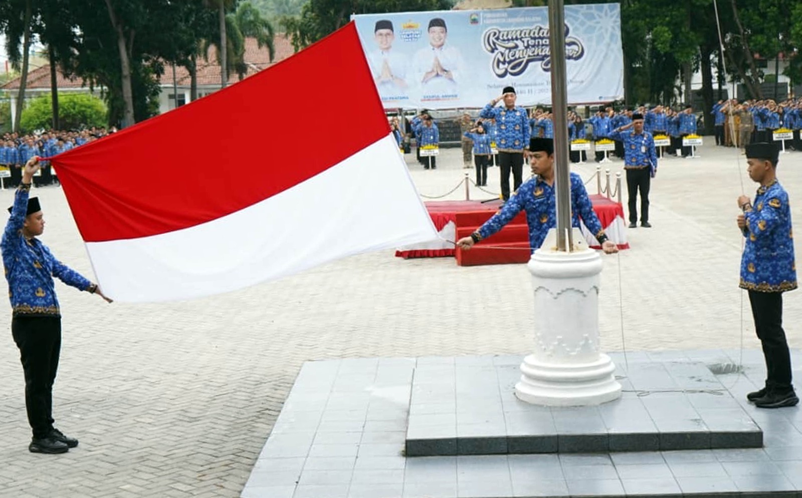 Upacara dipimpin Wakil Bupati (Wabup) Lampung Selatan, M. Syaiful Anwar, dan diikuti jajaran pejabat pimpinan tinggi pratama, kepala perangkat daerah, pejabat administrator, pejabat fungsional, serta seluruh Aparatur Sipil Negara (ASN). Sejumlah perwakilan kepala desa juga tampak mengikuti jalannya upacara.