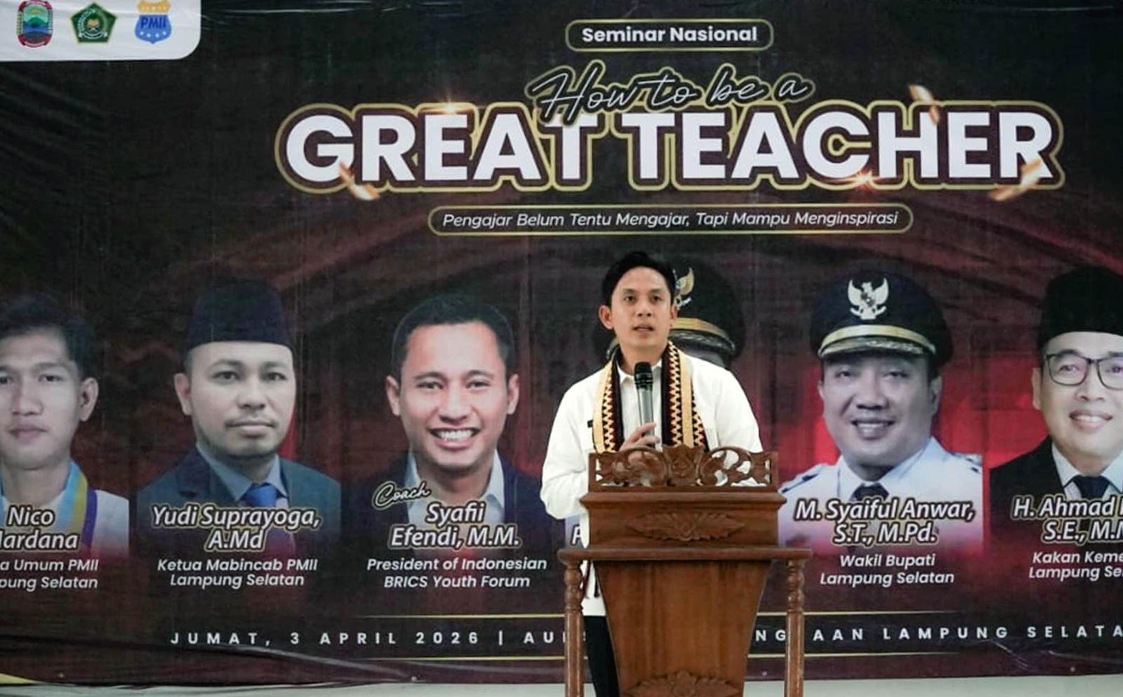 Pesan itu disampaikan Egi saat menjadi narasumber dalam Seminar Nasional bertajuk How to Be Great Teacher yang digelar di Aula SMA Kebangsaan, Kecamatan Penengahan, Kabupaten Lampung Selatan, Jumat (2/4/2026).